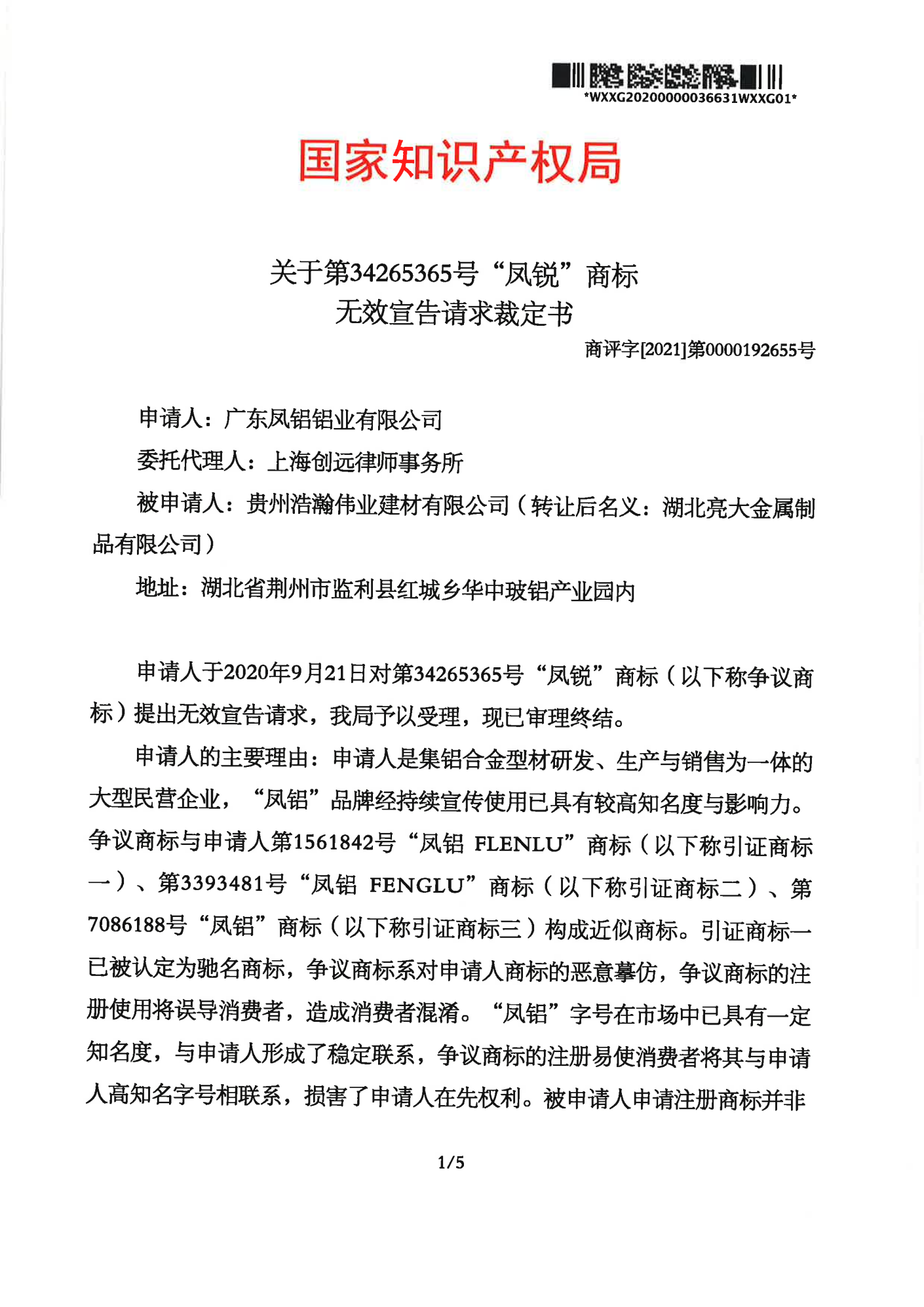 佛山辉知队 | 国家知识产权局:“凤锐”商标无效