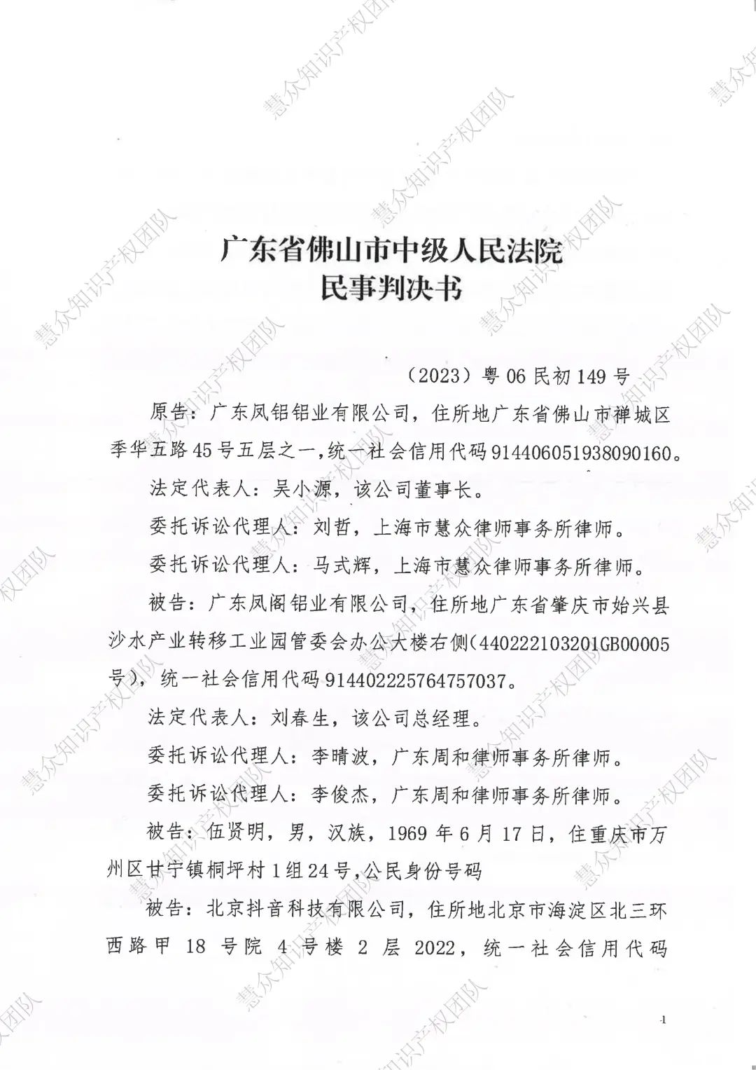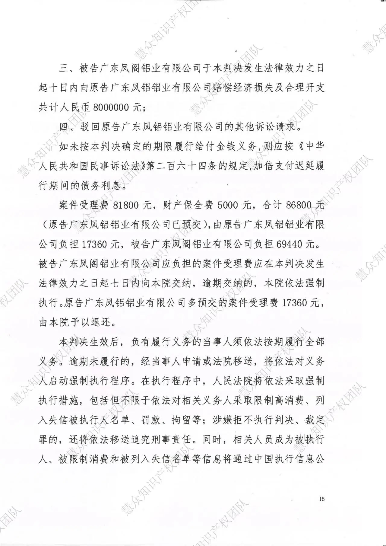 佛山判赔800万!辉知队代理“凤铝”商标维权案胜诉